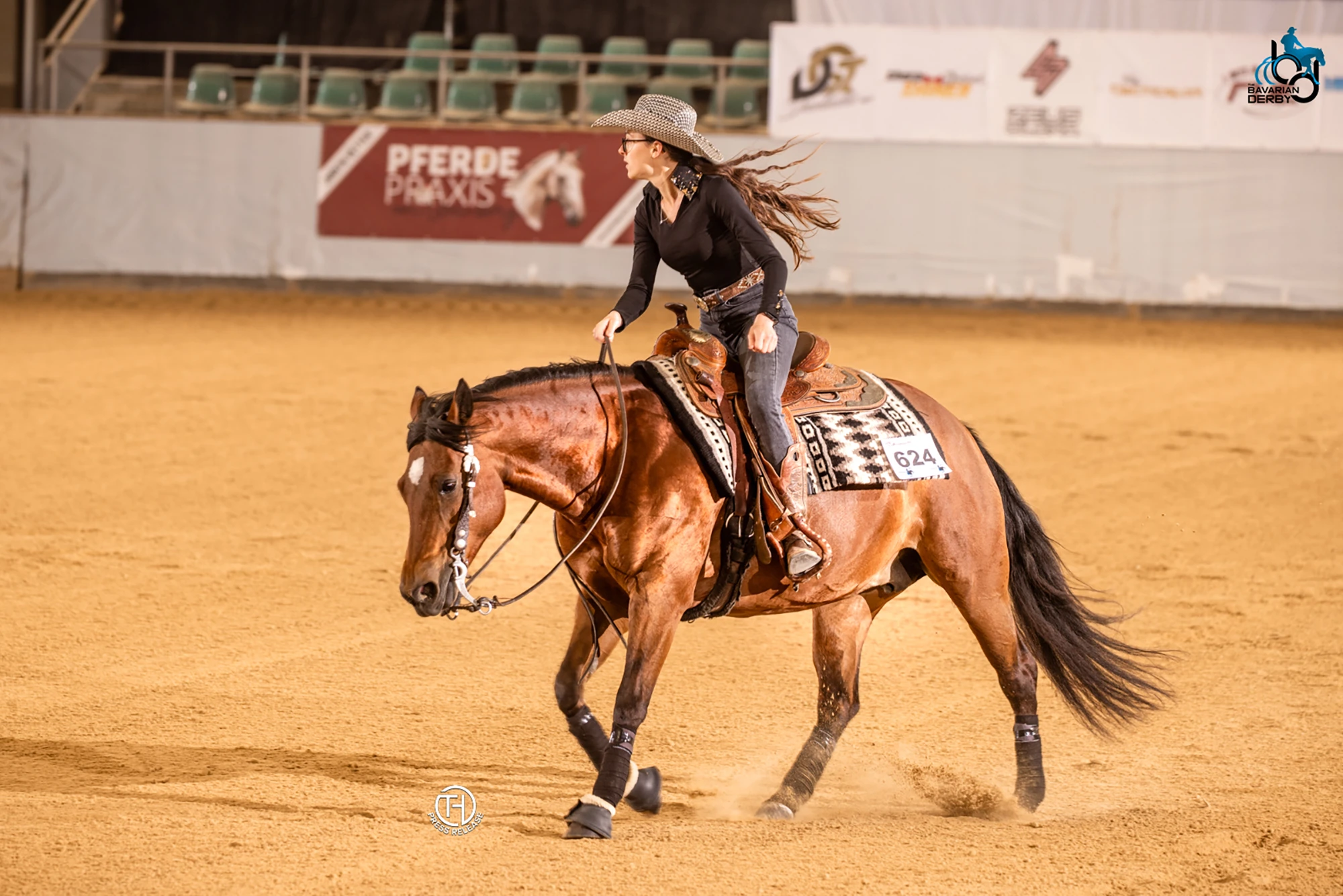 Zum Beginn des vierten Turniertags stand die 2BE Ranch Novice Horse Non Pro auf dem Zeitplan. Am Ende der Klasse ging die blaue Schleife an Jolena King mit Colonel Diblo Gun. Die beiden hatten einen Score von 139.5 für ihren Ritt bekommen. Zweiter wurde Franziska Engel auf SL Smart Diamonds mit einem Score von 139. Auf dem dritten Platz fanden sich zwei Reiter ein. Veroinka Vogl mit Customs Valentin und Celina Bachleitner mit Wallhalla Ruf bakemen für ihre Ritte jeweils eine 138. Wir bedanken uns bei der 2BE Ranch für das Klassensponsoring.